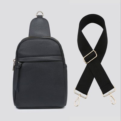 Double Zip Side Bag with Strap Black