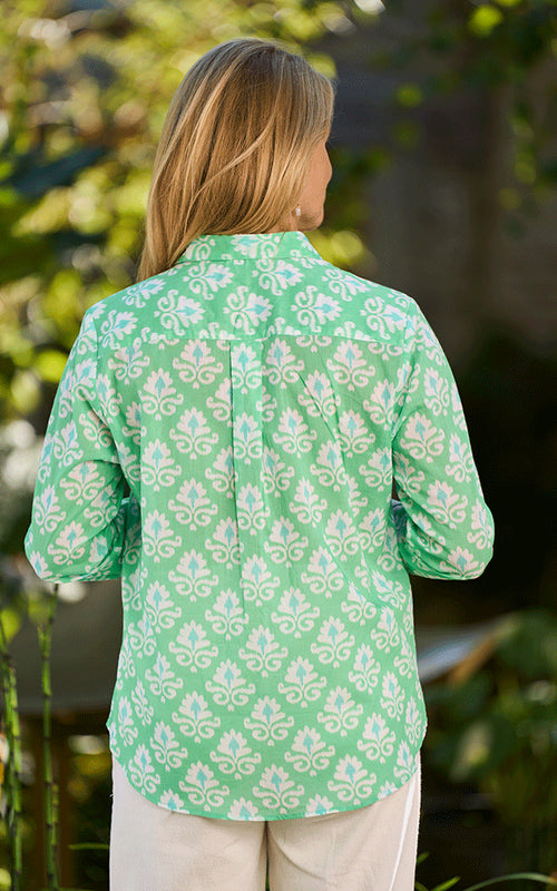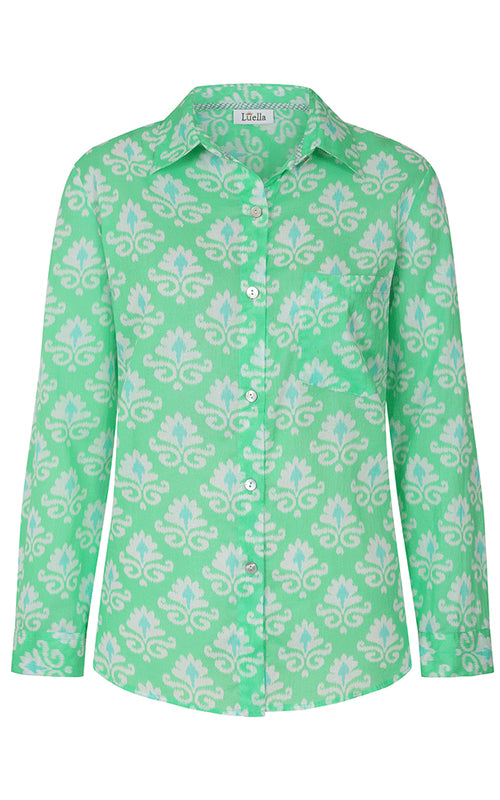 With its soft cotton voile and intricate Indian-style print, the Porto Shirt is a statement in effortless sophistication. Choose from a striking green or deep blue in the classic fit, or opt for the boyfriend style in blue for a relaxed, undone elegance.