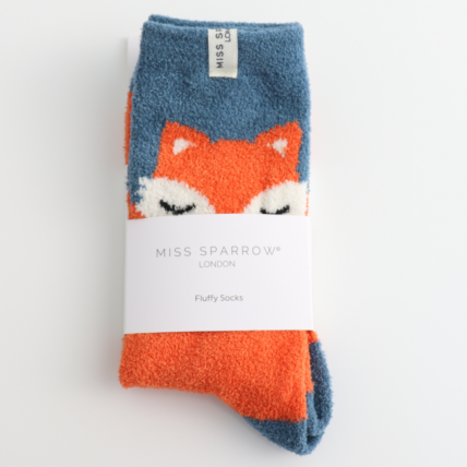 Sleepy Fox Blue Fluffy Socks